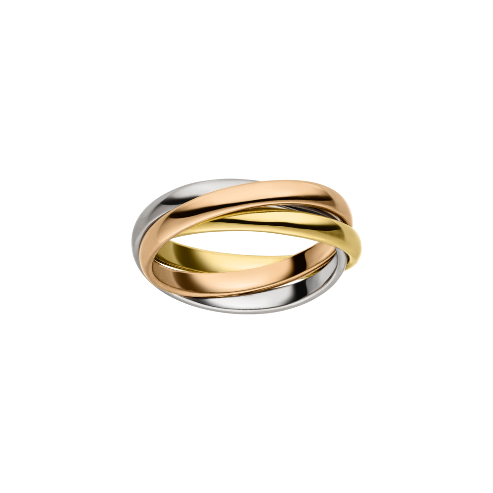 18 karaat geel- wit- en roodgouden trois anneauxring (Cartierring)