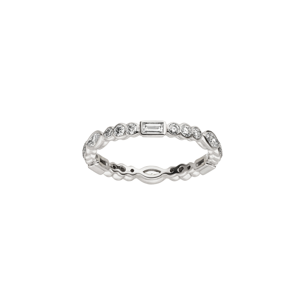 18 karaat witgouden memoirering rondom bezet met 24 natuurlijke briljant geslepen diamanten samen 0.85 ct. kleur G, zuiverheid: si