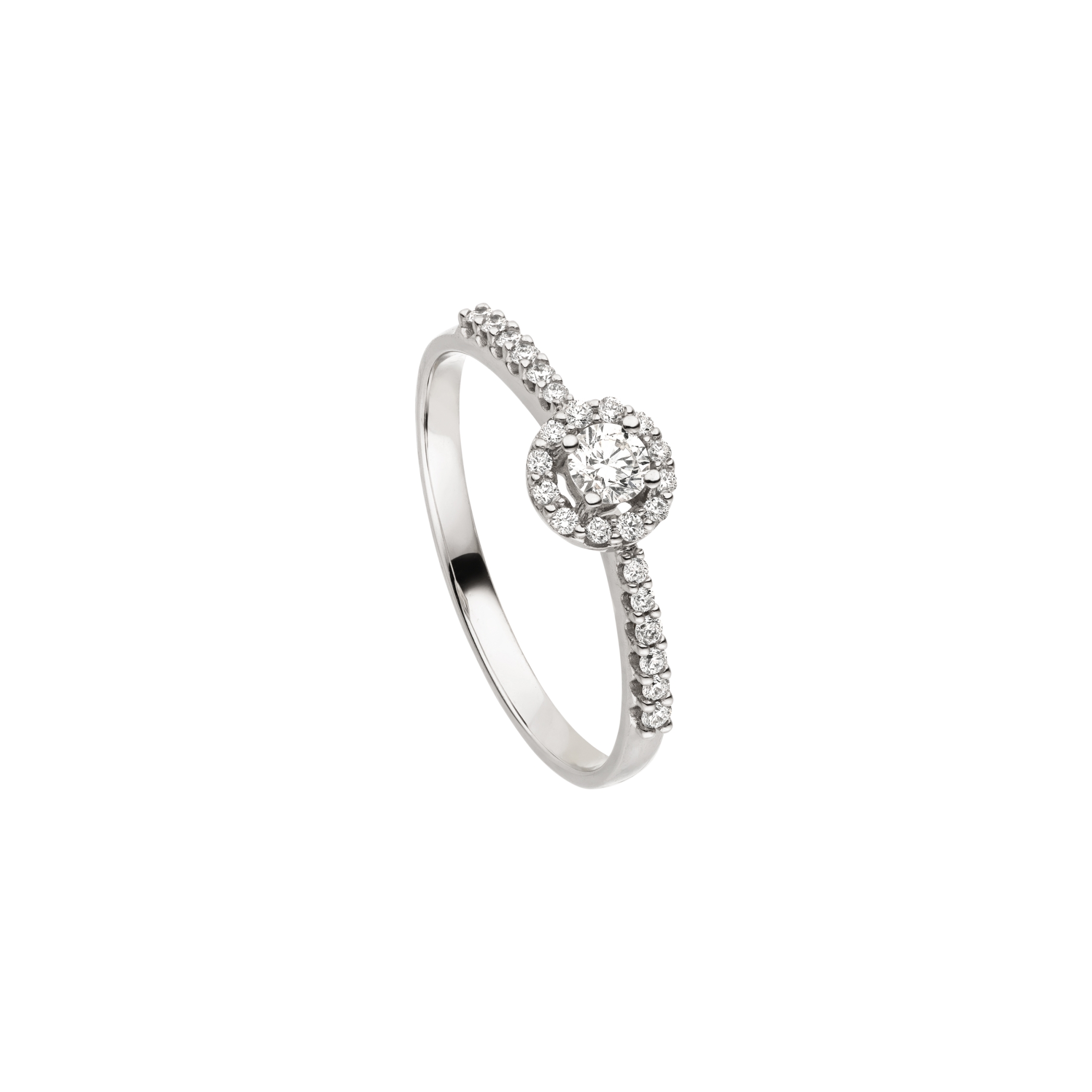 14 karaat witgouden entouragering gemaakt met natuurlijke, briljant geslepen diamanten samen 0.30 ct. kleur H, zuiverheid SI